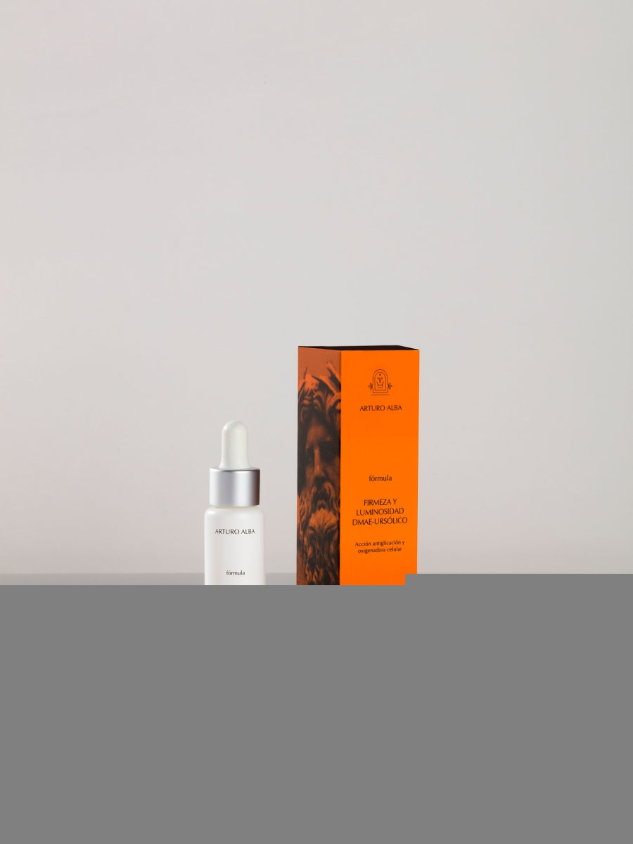 Sérum ultrafluido compuesto por una mezcla de potentes activos reafirmantes, iluminadores e inductores de la elasticidad como el DMAE y el ácido ursólico, que actúan en sinergia junto a activos que potencian la oxigenación celular y la síntesis de colágeno, como las sales orgánicas de cobre, magnesio, zinc, calcio y silicio.